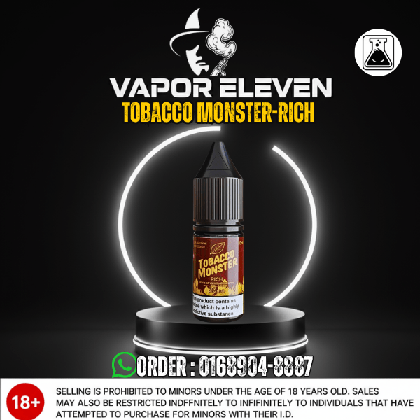 Looking for a smooth, tobacco-flavored nic salt with a luxurious twist? Shop Rich by Tobacco Monster today at Vapor Eleven and elevate your vaping experience.